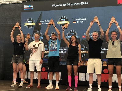 Katrin wird gewinnt die AK W 40 beim Ironman Frankfurt und ist damit Europameisterin in der Altersklasse - außerdem wird sie Dritte der Damen gesamt und sichert sich den Hawaii-Slot