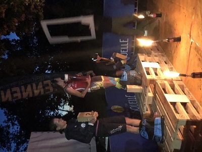 Kaum zu glauben, aber die Wetterbedingungen waren traumhaft: Sonne und fast 30°. Den ersten Lauf über sehr anspruchsvolle 10 km (Berg-)Lauf ging ich sehr kontrolliert an (Der Tag war ja noch lang) und wechselte als 8. auf’s Rad. Insgesamt 150 km, also 3 Runden (mit je 3 Bergen und teils sehr steilen Anstiegen) von je 50 km waren zu absolvieren. Auf dem Rad fühlte ich mich wie immer super und ich konnte mich teilweise in den Bergaufpassagen sogar bis auf Platz 4 vorarbeiten. Schließlich ging ich als 6. auf den abschließenden 30 km-Lauf (3km bergauf, dann wellig, davon 1 extrem steiler Anstieg, dann wieder 3 km bergab und das gleiche nochmal). Bergauf ging’s super, bergab wurde ich dafür wieder durchgereicht (vielleicht sollte ich das Bergablaufen auch mal trainieren…), und oben wurde es richtig heiß und zu wenig Wasser an den Verpflegungsstellen ergattert. Glücklicherweise dann eine rettende Wasserflasche von Tom. Und Cornelia war extra auf den Berg gegangen, um mich weiter anzufeuern und zu motivieren. Danke!