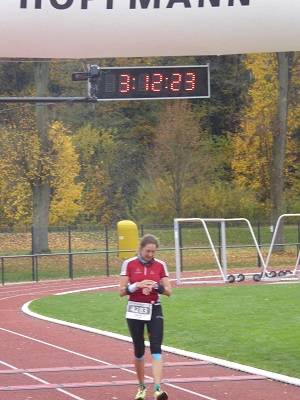 Beim Absteigen vom Fahrrad vor der Wechselzone wurde im Gemenge Katrin ein Schuh vom Rad heruntergeschlagen und sie mußte den Schuh erst suchen und mit zum wechselplatz nehmen. Das ist die Regel. Leider verlor sie damit sehr viel Zeit. Mit einer tollen Leistung beim abschließenden Lauf im Olympiapark über 5 km konnte sie trotzdem einen sehr guten 6. Platz erreichen. Es war ein wunderbares Gefühl in München auf diesem geschichtsträchtigen Boden diesen Wettkampf zu absolvieren. Das Ziel war im selben Stadion, in das die beiden Tage zuvor auch die Elite-Athleten eingelaufen waren.