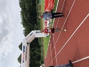 Relativ spät konnte Katrin erst einen der sehr begehrten Startplätze beim Allgäu-Triathlon ergattern, nachdem die Anmeldung nochmal mit Reststartplätzen geöffnet worden ist. Katrin startete dort über die Mitteldistanz. Dieser Wettkampf war zugleich Bayerische Meisterschaft über diese Strecke. Nachdem es die Tage zuvor stark geregnet hatte - die Wiesen standen unter Wasser und der Alpsee hatte Hochwasser - war es am Wettkampftag sonnig und die Temperaturen sommerlich. Katrin startete mit einer tollen Leistung beim Schwimmen über 2 km im Alpsee und ging als Führende in der AK W 40 auf die bergige Radstrecke über 80 km, die den Teilnehmern alles abverlangte. Katrin kam nach dem Radfahren mit geringem Abstand zum Wechsel auf die Laufstrecke. Beim abschließenden Halbmarathon konnte sie sich trotz Hitze und sehr anspruchsvollem Höhenprofil gegen ihre schärfste Konkurrentin Barbara Rieger durchsetzen und gewann nicht nur die Altersklasse gesamt, sondern wurde damit auch Bayerische Meisterin in der Altersklasse W 40. Insgesamt wurde sie 11. Frau (einschließlich Elite), was bei diesem hochklassigen Starterfeld ein großartiges Ergebnis ist. Herzlichen Glückwunsch!