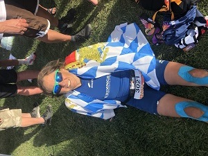 Katrin gewinnt ihre Altersklasse W 40 über die Mitteldistanz beim Allgäu-Triathlon und wird damit Bayerische Meisterin in der Altersklasse